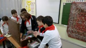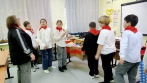 Сегодня у нас в гостях куратор Движения Первых Большечерниговского района Гизатуллина Юлия Александровна. Она организовала для ребят увлекательное мероприятие. Школьники совершили необычное путешествие, отправившись в прошлое – в эпоху Советского Союза. Это погружение в историю стало для них возможностью не только узнать о жизни в СССР, но и почувствовать атмосферу того времени.